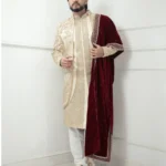 September 18, 2025Elevate your festive wardrobe with this exquisitely crafted kurta and trouser set, featuring luxurious Banarsi jacquard fabric and intricate handwork details. Available in five rich colors, this set offers a perfect blend of tradition and contemporary style, designed for special occasions and celebrations. The comfortable fit and premium finish ensure you stand out with elegance and grace.